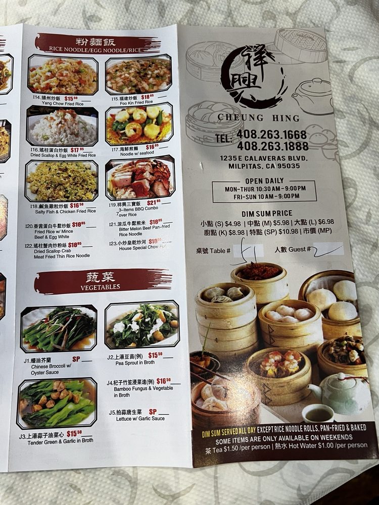 Cheung Hing - Milpitas is a dim sum seafood restaurant that offers a variety of dishes such as Peking Duck, Poached Beef Tripe, and Steamed Spareribs. With a focus on quality and taste, customers praise the outstanding dim sum, quick service, and clean interior. While the prices may be higher, it is a great spot for special occasions or treating your parents. The revamped menu offers unique rice and noodle dishes, along with porridge options. The tofu with sweet meat and deconstructed duck/pork bun stand out for their exceptional taste. The ambiance is elegant, with a fancy lazy Susan and chandelier decor. Overall, Cheung Hing - Milpitas is a hidden gem with underrated flavors and a pleasant dining experience.